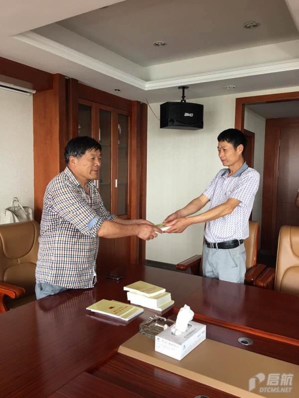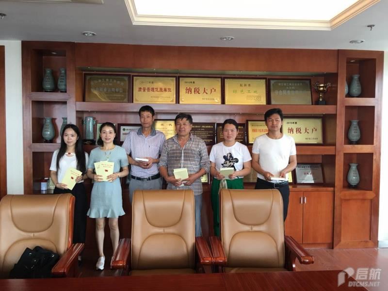 圖為公司黨支部書記余長生給黨員派發《讀本》和《手冊》